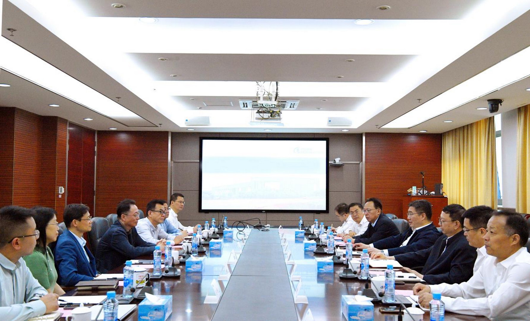 4月15日,省自然资源厅党组成员、省地质局党组书记饶清华一行到中国瑞林调研,与公司党委书记、董事长章晓波,党委副书记、总经理吴润华座谈交流,双方就开展务实合作达成意向。